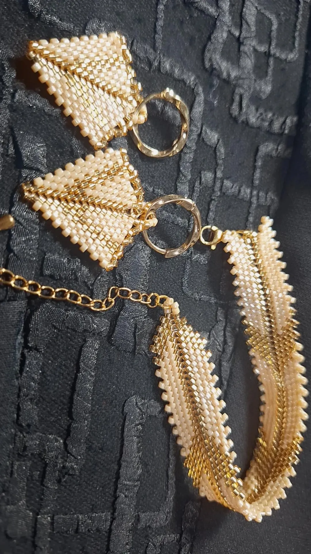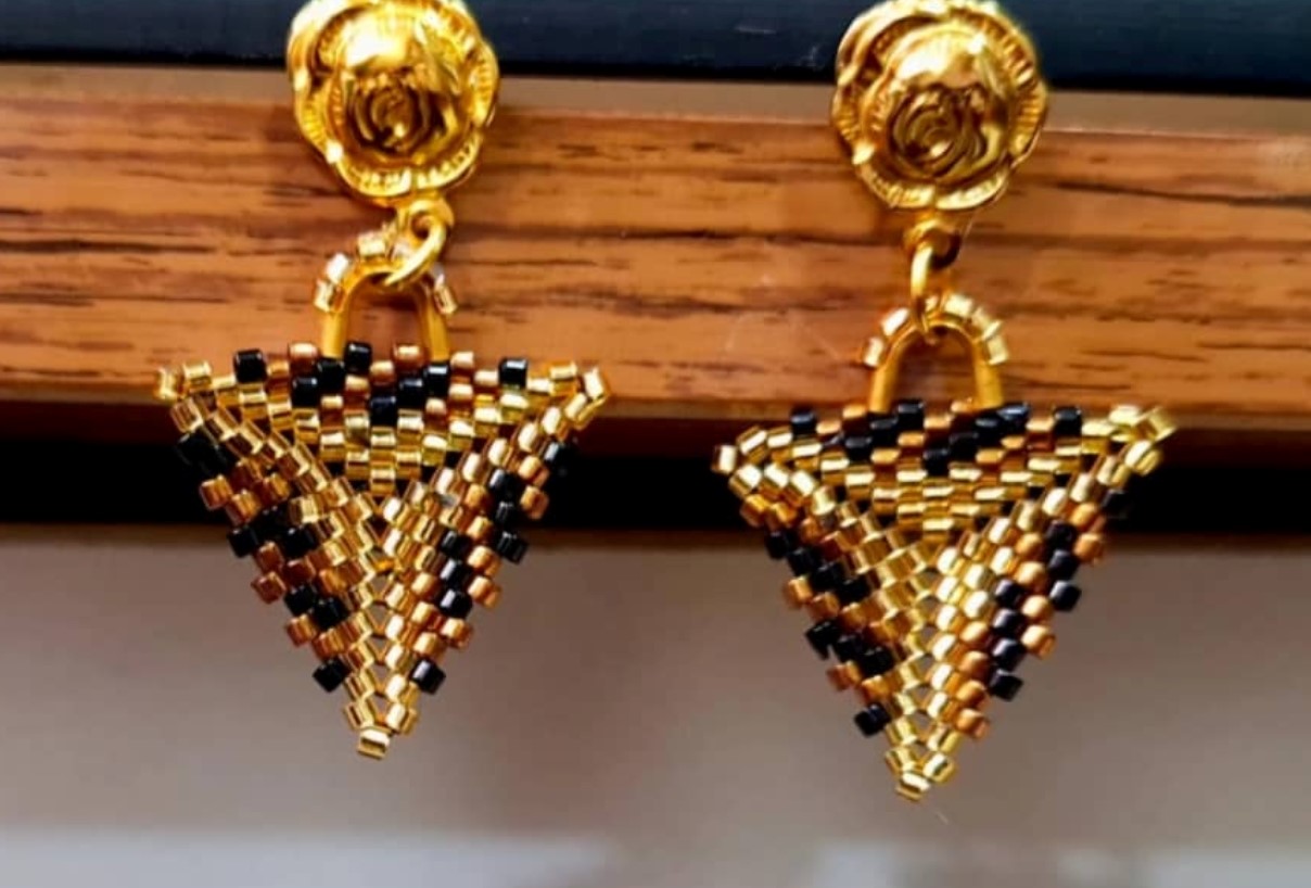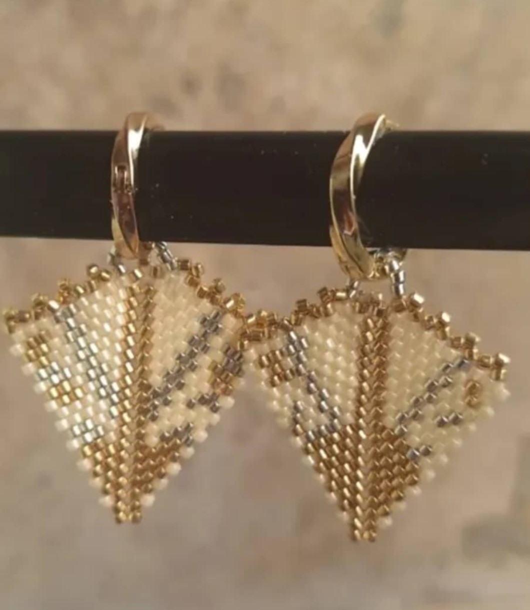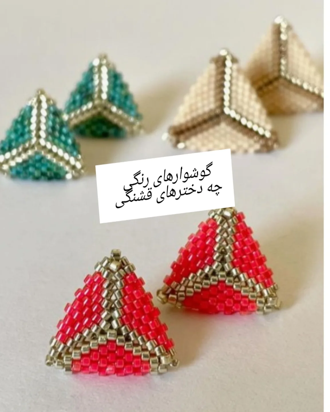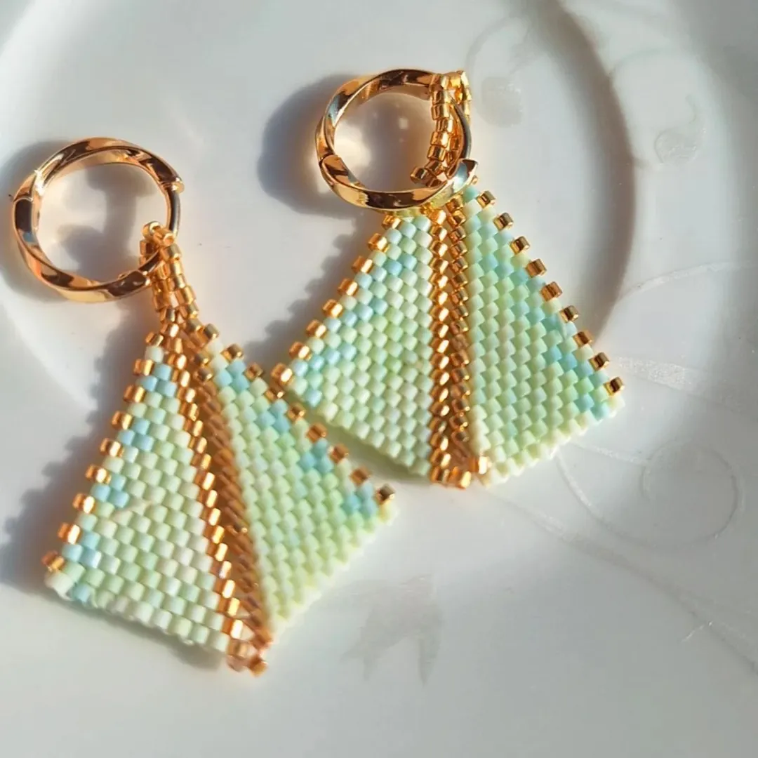 گوشواره مثلثی دورو منجوق میوکی طرح 3 ضلع