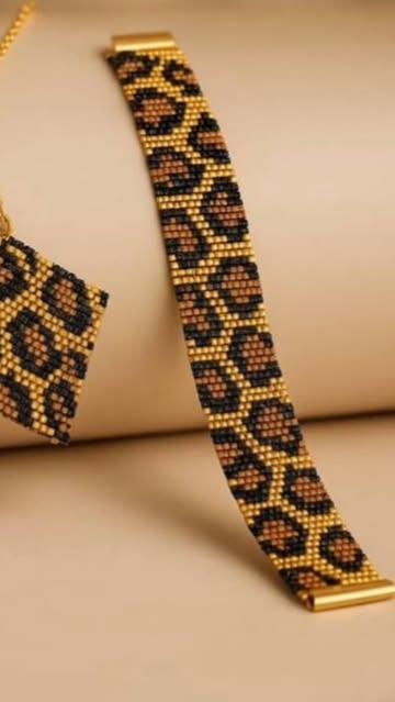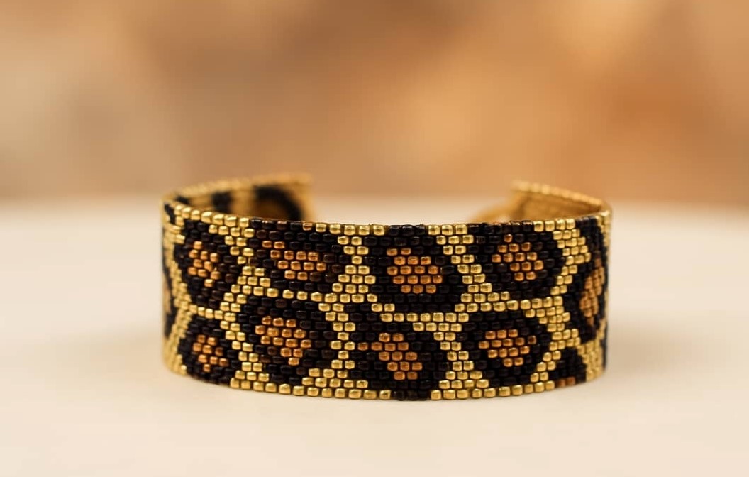دستبند منجوق بافت میوکی ژاپن طرح پلنگی